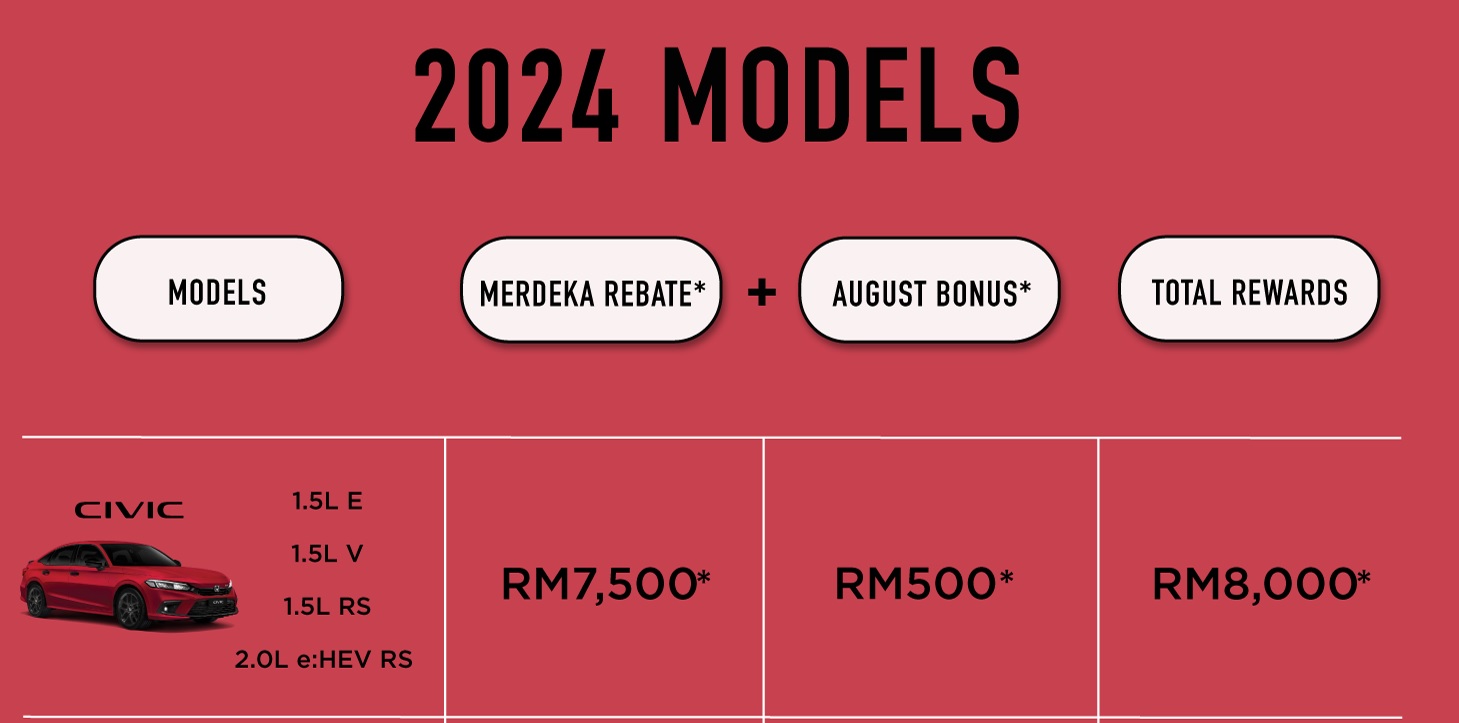 2. Honda Civic Semua Model: Ganjaran sehingga RM8,000